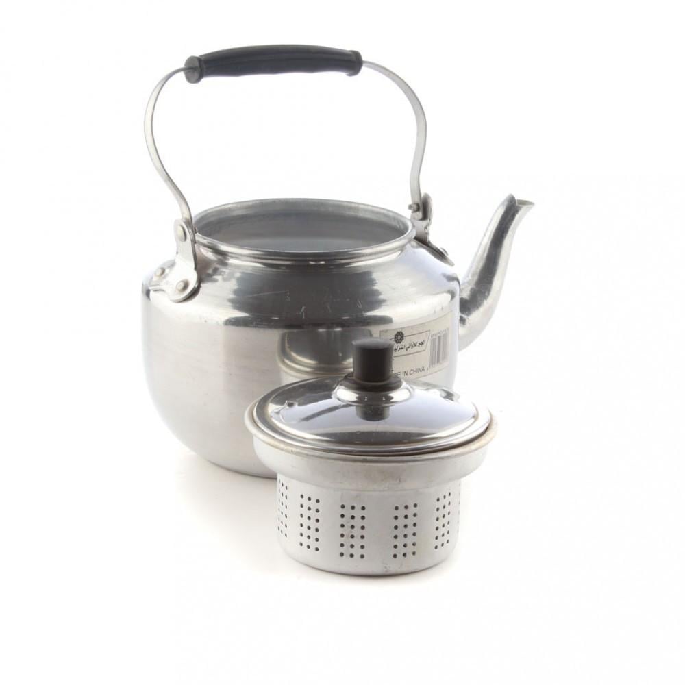 إبريق شاي معدني (يُعرف أيضًا بـ براد أو غوري) مصمم على الطراز التقليدي، وهو مصنوع من الألومنيوم المصقول. يتميز الإبريق بتصميم عملي ومتين، مما يجعله مثاليًا للاستخدام اليومي لتحضير الشاي.